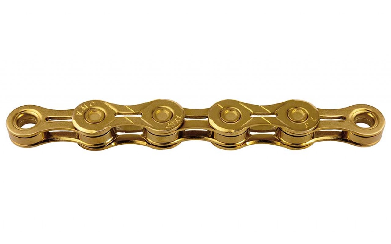 La catena KMC X11EL Ti-N oro è un modello economico e performante compatibile con i sistemi 10 velocità Strada / MTB.