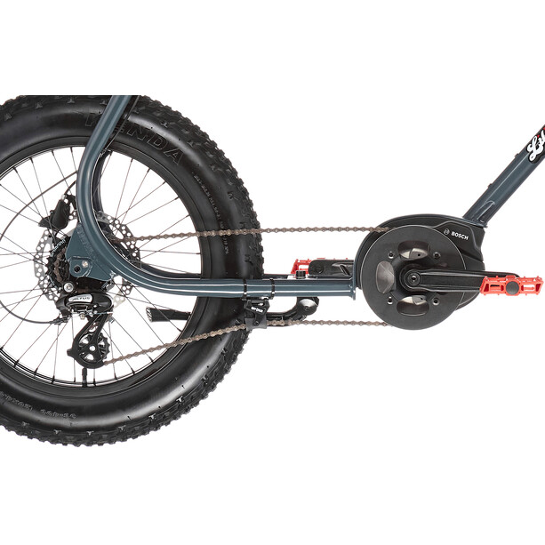 Dotato di un azionamento Bosch Active Line, di freni a disco idraulici Shimano e di un azionamento Shimano a 7 velocità, il Lil’Buddy è perfettamente equipaggiato per tutte le vostre avventure. La batteria Bosch da 300 Wh offre un’autonomia di 30-100 km e richiede solo 2,5 ore per essere completamente carica.