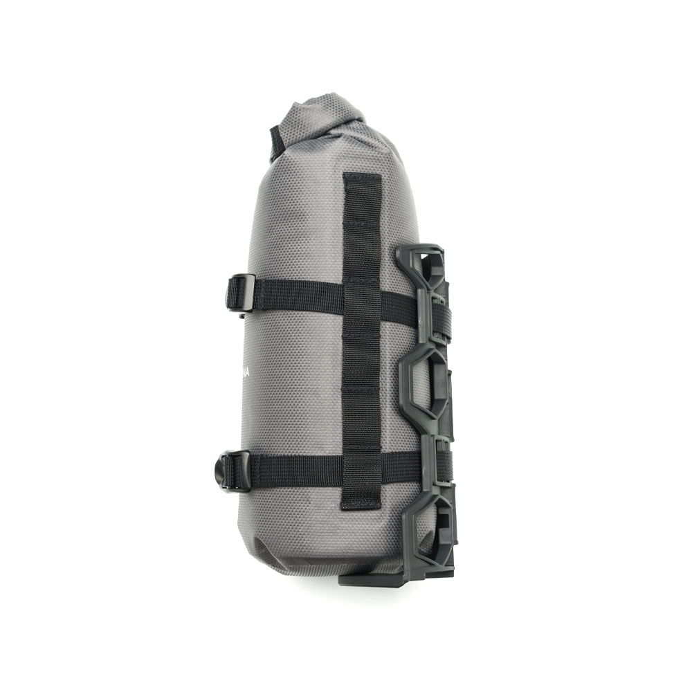 La nostra borsa della forcella. La nostra ragazza viziata. Una delle nostre borse da ciclismo leggere più utili e polivalenti . La sua gabbia composita può essere fissata alla forcella con morsetti o, se consentito, con viti. Puoi anche aggiustarlo sui fili per trasportare le bottiglie nella cornice. Il sacchetto da 5 litri con interno in laminato TPU . Completamente impermeabile e assicurerà che i tuoi oggetti viaggino sempre isolati da umidità e polvere. La gabbia e la borsa formano una grande squadra insieme, ma separatamente possono essere molto utili anche per te. Puoi usare la borsa per trasportare o addirittura prendere l’acqua . Può essere la tua doccia di viaggio. La gabbia ti consente di trasportare grandi bottiglie d’acqua o qualsiasi cosa tu improvvisi lungo la strada. Valido per forcelle rigide e sospensioni