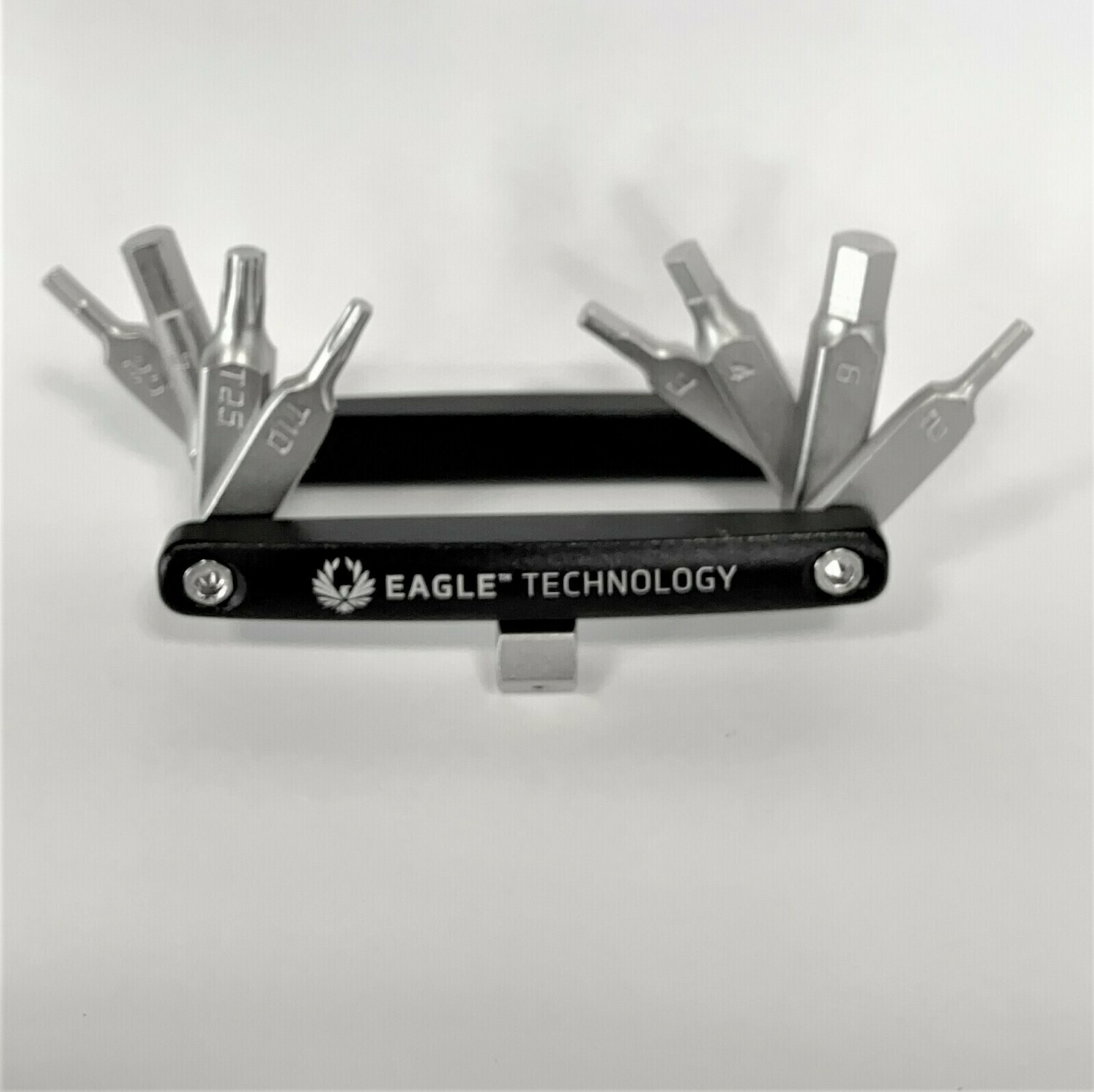 - Attrezzo multiuso SRAM Eagle con chiavi a brugola da 2/2,5/3/4/5/6/8 mm e chiavi torx T10 e T25.