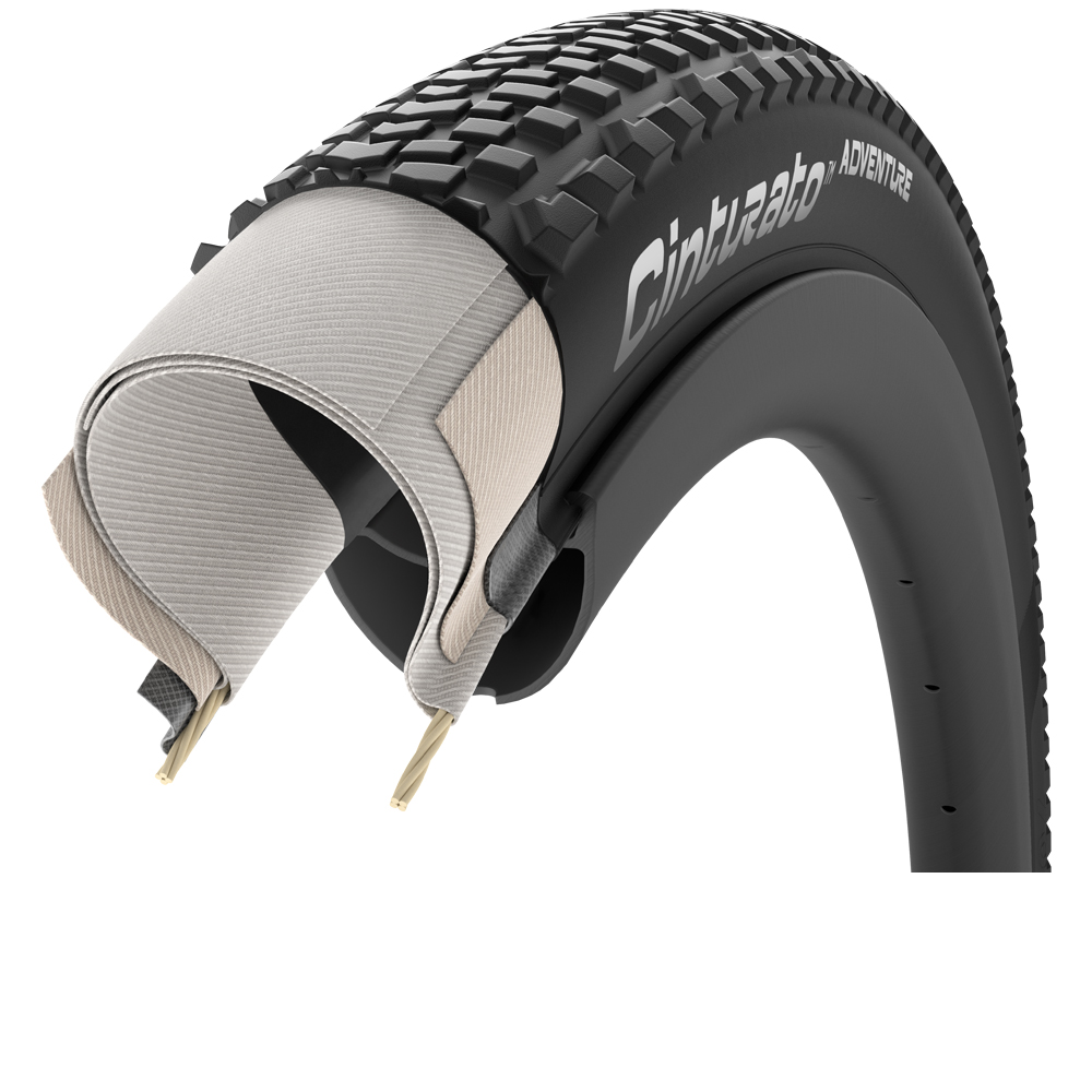 Il Cinturato Adventure è progettato per la tue avventure in bikepacking; il battistrada è più leggero nella parte centrale e più aggressivo sulla spalla, essendo i tasselli di derivazione off-road orientati a favorire il supporto in fuoristrada. Il Cinturato Adventure presenta il nuovo ProWall Gravel, una carcassa tubeless-ready da 60tpi con un rinforzo laterale aggiuntivo per evitare tagli laterali mentre il ProCompound Gravel, grazie alla sua formulazione composta da un mix di polimeri, fornisce un chilometraggio migliorato. Il Cinturato Adventure è uno pneumatico in grado di fornirti trazione e aderenza su diverse superfici.