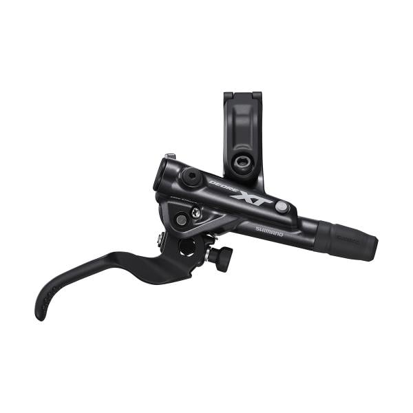 I nuovi freni Shimano fanno parte dell’aggiornato gruppo Deore XT M8100 e rappresentano uno nuovo standard in termini di modulabilità e performance. Grazie al nuovo sistema I-Spec EV, la leva ha 2 punti d’appoggio, che garantisce una stabilità superiore, mentre la funzione principale permette una regolazione laterale e angolare del comando cambio che viene fissato con una sola vite, mantenendo così il manubrio in perfetto ordine.