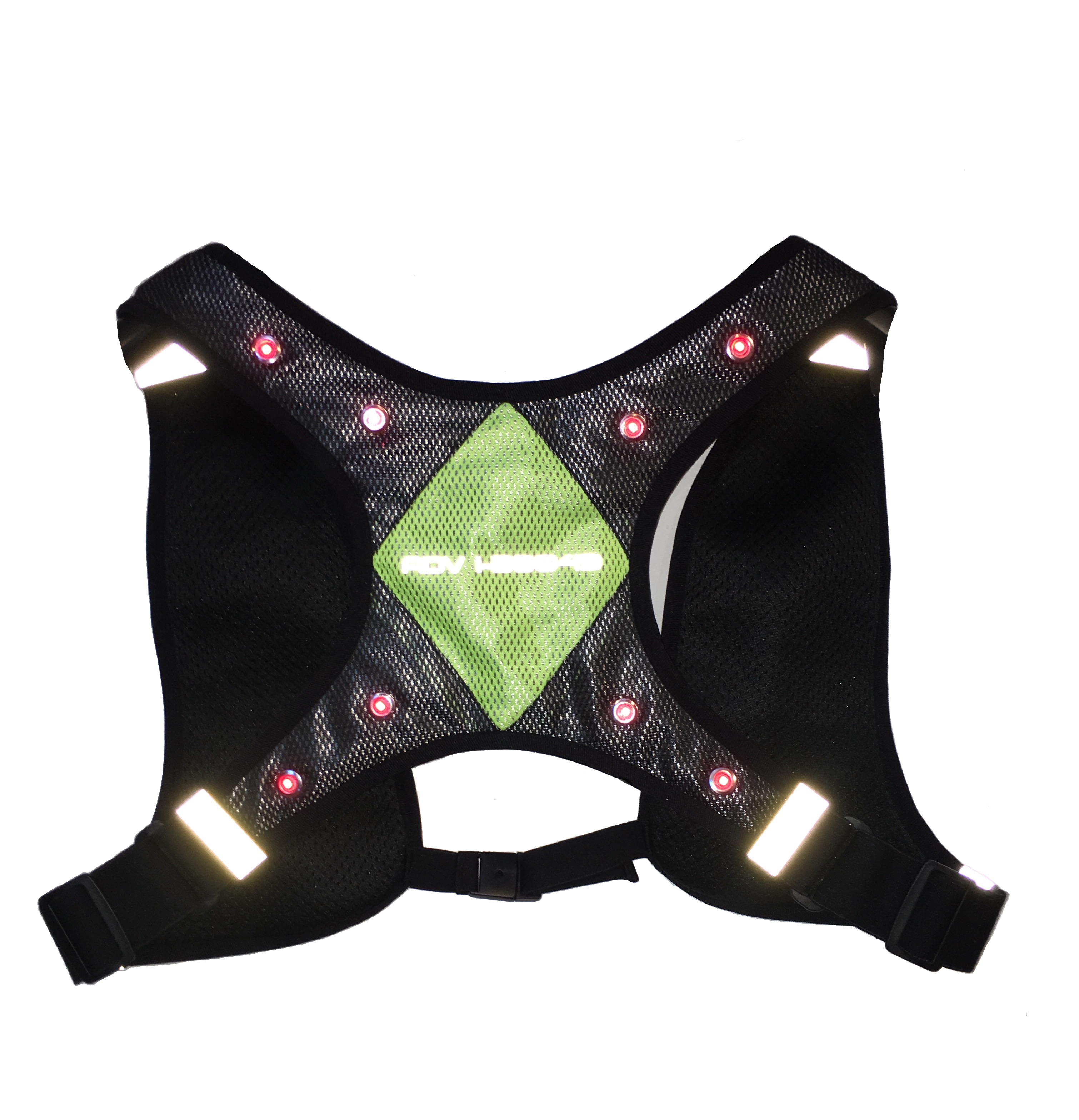 NOVITA’ 2019 – X-VISION unisex per gli sportivi della notte (runner, biker/motor-biker o semplici pedoni in passeggiata con il proprio cane). Finalizzato ad aumentare la visibilità e sicurezza di chi, per motivi differenti percorre strade o sentieri in situazioni di scarsa visibilità. Il concetto funzionale dell’ X- VISION prevede un design compatto, leggero, comodo e adatto a tutte le stagioni, garantito da struttura ridotta al minimo e da bretelle elasticizzate e regolabili. Punto fondamentale del modello sono i led a bottone anteriori e posteriori che consentono di essere visibili già a 1000 mt di distanza. Il caratteristico posizionamento a X dei led posteriori a luce rossa, mentre i 6 led bianchi anteriori completano la sicurezza attiva del dispositivo. Inserti e logo reflex completano la sicurezza passiva, mentre controller ricaricabile con mini usb data in dotazione e due comode tasche anteriori completano l’offerta e consentono di riporre smartphone, chiavi o piccole borracce flessibili. Il controller prevede 3 soluzioni di luce, con resa a temperatura ottimale della durata della batteria di circa 11-12 ore in funzione fissa, fino a 19/20 in funzione lampeggio lento.